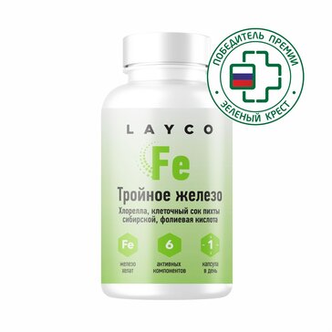 Layco Лайко Тройное железо с хлореллой (капсулы 600 мг №30 банка) Сибфармконтракт ООО - Россия