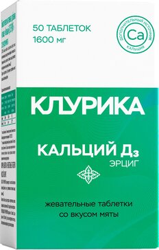 Клурика Кальций Д3 (жевательные таблетки со вкусом мяты массой 1600 мг №50) Фармацевтическая Фабрика ООО г. Пенза - Россия