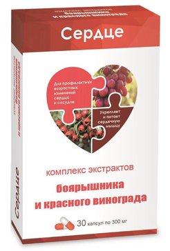 Комплекс экстрактов боярышника и красного винограда Сердце (капсулы 300 мг N30) Внешторг Фарма ООО (г. Москва) - Россия