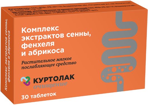 Куртолак очищение Комплекс экстрактов сенны, фенхеля и абрикоса (таблетки 500 мг N30) Внешторг Фарма ООО (г. Москва) - Россия