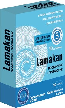 Способ применения и дозы: Взрослым и детям старше 3 лет по 1 капсуле 1 раз в день на голодный желудок. Продолжительность приема – 1 месяц. При необходимости курс можно повторять 2-3 раза в год. При приеме капсул детьми родители должны убедиться, что ребенок в состоянии проглотить капсулу. Детям младше 5 лет содержимое капсулы высыпать в воду или молоко с температурой не выше 40°С, перемешать и сразу выпить. Для усиления положительного эффекта не рекомендуется употреблять алкоголь или горячие напитки во время или сразу после приема капсул LAMAKAN. Во время прохождения курса лечения антибиотиками, рекомендуется принимать капсулы LAMAKAN по меньшей мере через 3 часа после приема антибиотика. Разнообразная сбалансированная диета и здоровый образ жизни будут способствовать положительному эффекту от LAMAKAN. Не употреблять после истечения срока годности, указанного на упаковке.