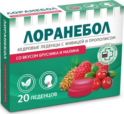 Лоранебол леденцы кедровые с живицей и прополисом на изомальте брусника и малина (шт. №20) Экол ООО - Россия