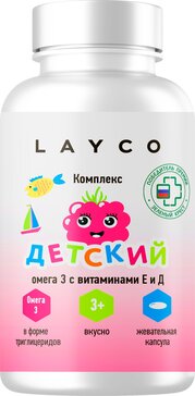 Layco Лайко Комплекс детский Омега-3 с витаминами Е и Д со вкусом малина и травы (капсулы жевательные массой 710 мг №60) Сибфармконтракт ООО - Россия