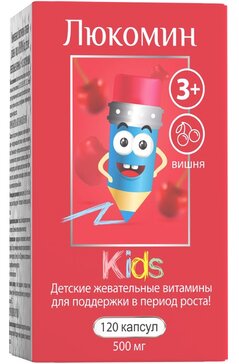 Люкомин кидз Kids детские жевательные витамины вкусом вишни 3+ (капсулы 500 мг N120) Мирролла ООО - Россия