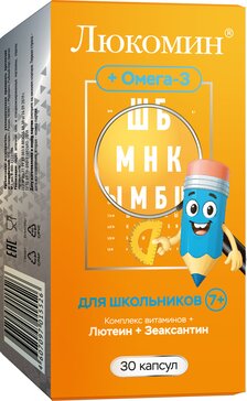 Люкомин Комплекс витаминов для школьников с лютеином, зеаксантином и омега-3 (капсулы 490 мг N30) Полярис ООО (г. Мурманск,) - Россия