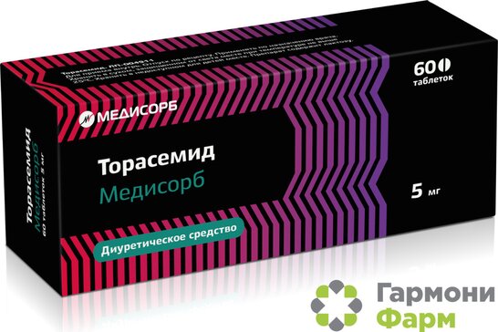 Торасемид Медисорб (таблетки 5 мг № 60) ГАРМОНИФАРМ Медисорб АО г.Пермь Россия