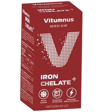 VitUmnus Витумнус Железо хелат (капсулы 20 мг №60) ВТФ ООО - Россия